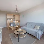 Appartement Face Mer Pour 4 A Saint Brevin L Ocean oferece acomodação à beira-mar numa área conveniente em frente à praia, 4.2 km de distância de Paroisse Saint Nicolas de l'Estuaire. Uma cozinha equipada do apartamento tem chaleira elétrica, um frigorífico e forno.